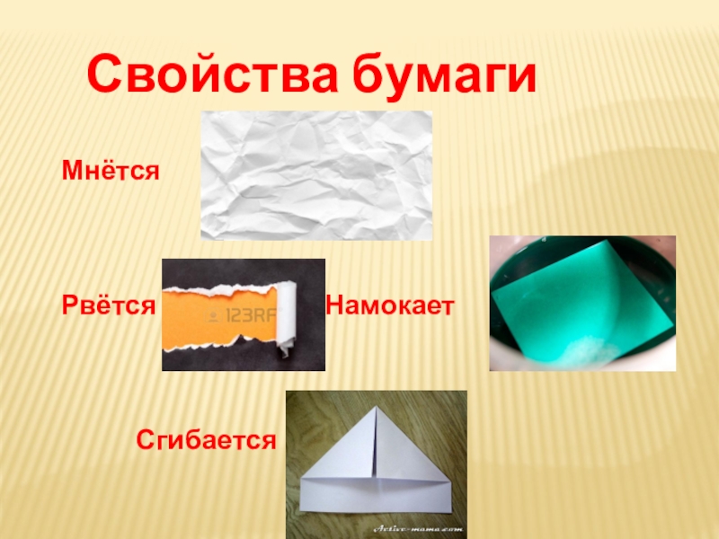 Свойства бумагиМнётсяРвётся               Намокает