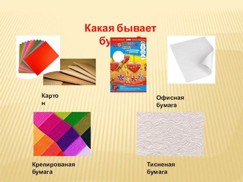 Какая бывает бумага?Картон Офисная бумагаКрепированая бумагаТисненая бумага