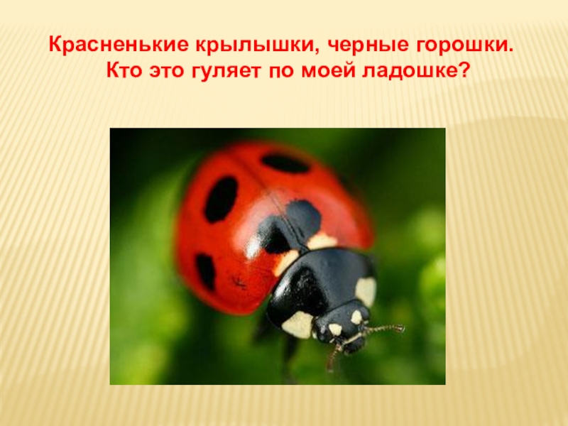 Красненькие крылышки, черные горошки.Кто это гуляет по моей ладошке?
