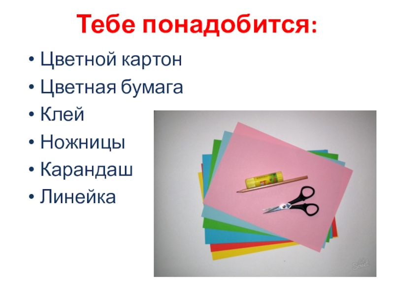 Тебе понадобится: Цветной картонЦветная бумагаКлейНожницыКарандашЛинейка