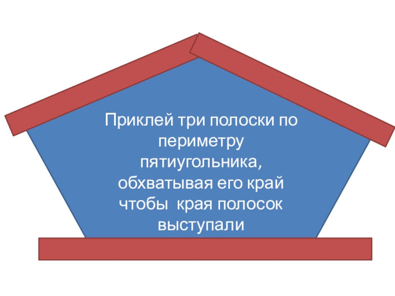 Слайд 8Приклей три полоски по периметру пятиугольника, обхватывая его край