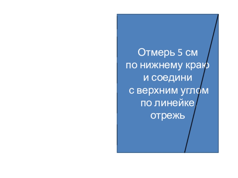 Отмерь 5 см по нижнему краю и соедини с верхним углом по линейке,отрежь