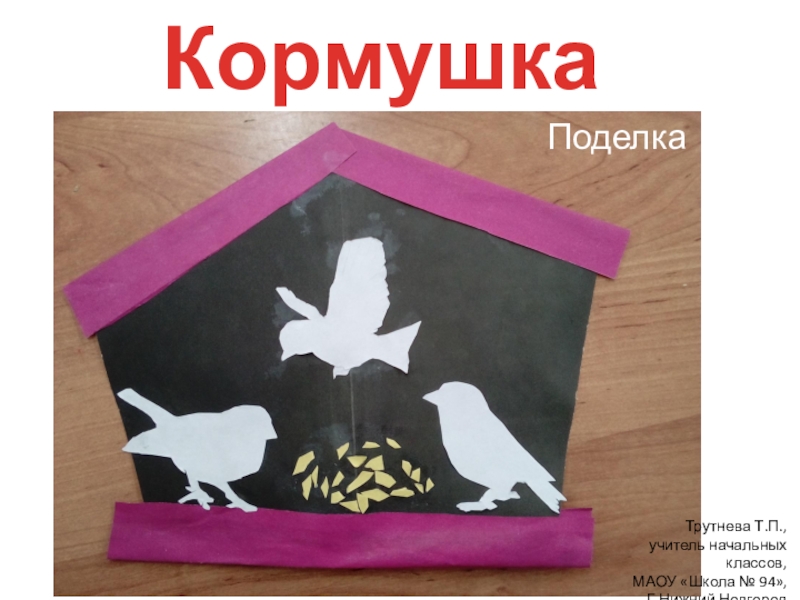 КормушкаПоделкаТрутнева Т.П., учитель начальных классов, МАОУ «Школа № 94»,Г.Нижний Новгород