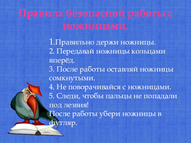 Правила безопасной работы с ножницами.