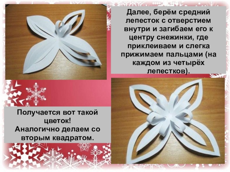 Загибаем противоположные края полосок в центру.