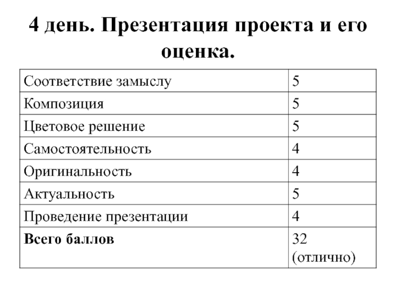 Слайд 114 день. Презентация проекта и его оценка.
