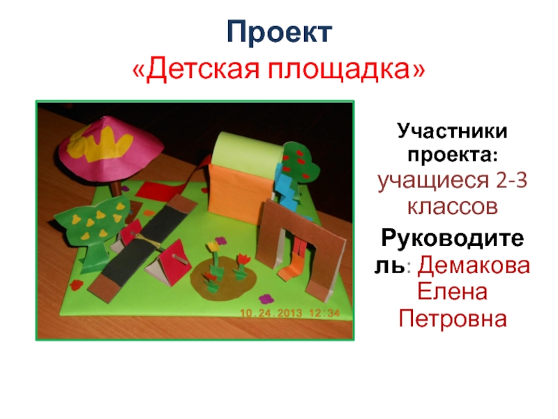 Проект  «Детская площадка»Участники проекта: учащиеся 2-3 классовРуководитель: Демакова Елена Петровна