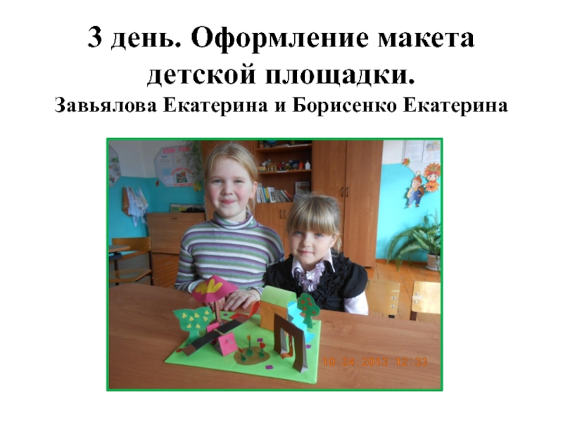 Слайд 103 день. Оформление макета детской площадки. Завьялова Екатерина и Борисенко Екатерина