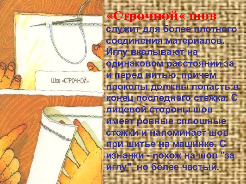 Слайд 3«Строчной« шов