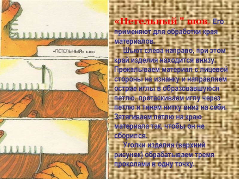 Слайд 6«Петельный " шов. Его применяют для обработки края материалов.
