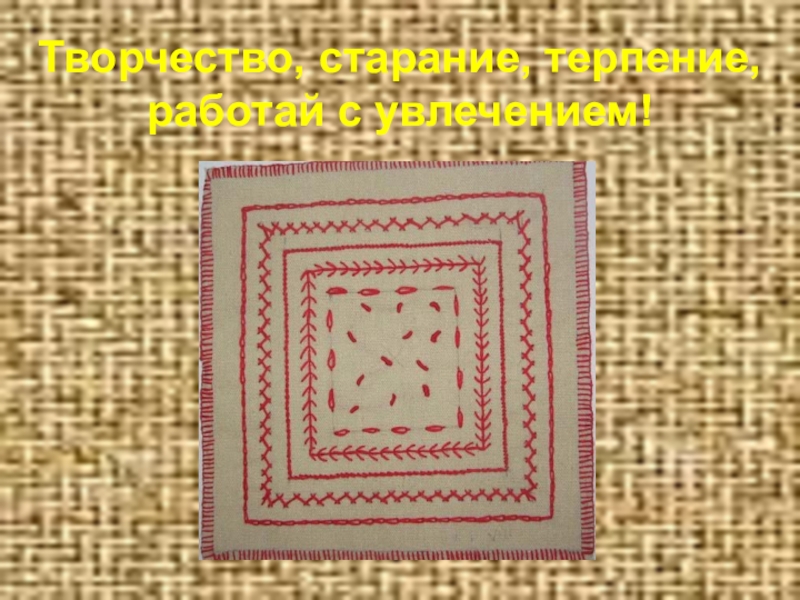 Слайд 10Творчество, старание, терпение, работай с увлечением!