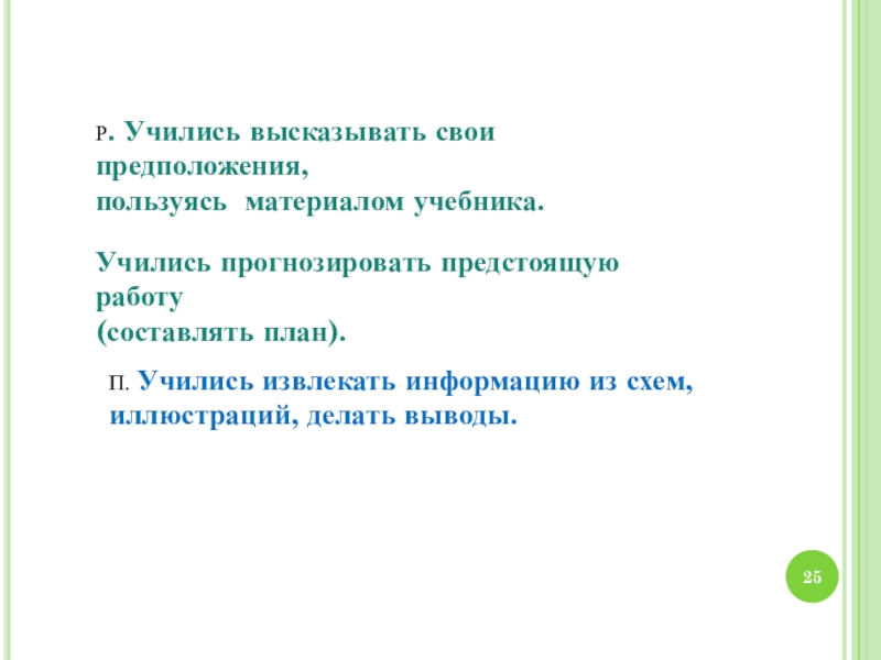 П. Учились извлекать информацию из схем, иллюстраций, делать выводы.