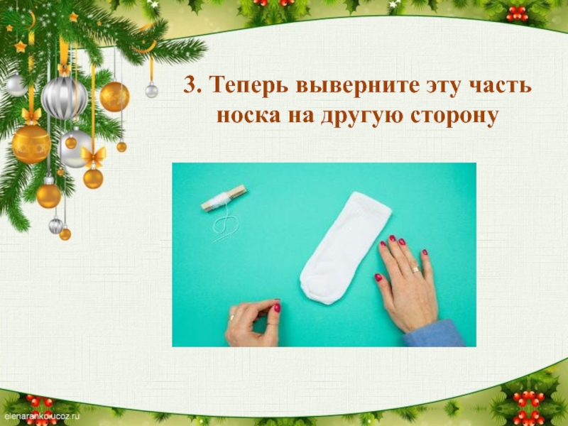 Слайд 53. Теперь выверните эту часть носка на другую сторону