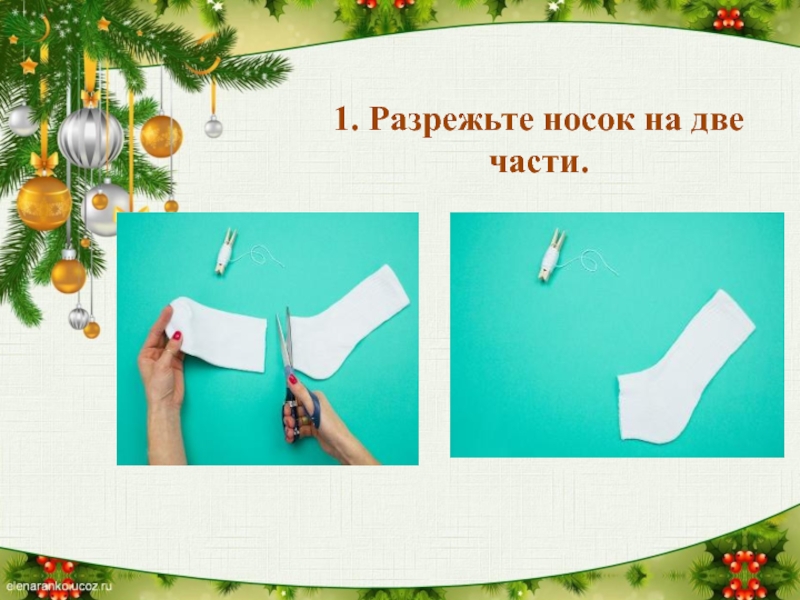 Слайд 76. Сформируйте голову и перевяжите носок еще раз ниткой в том