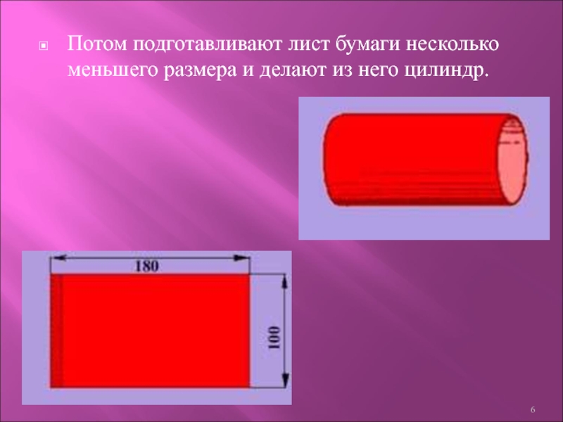 Потом подготавливают лист бумаги несколько меньшего размера и делают из него цилиндр.