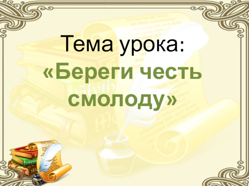 Презентация, доклад к уроку УГД Береги честь смолоду