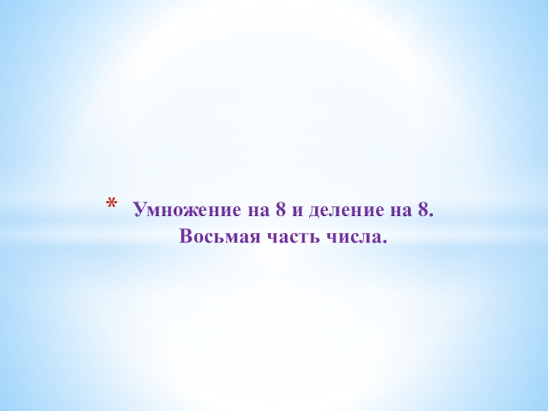 Слайд 1Умножение на 8 и деление на 8. Восьмая часть числа.