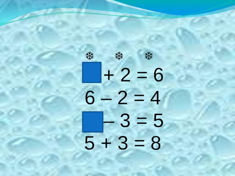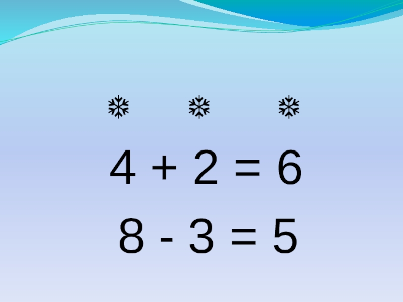 ❆   ❆   ❆ 4 + 2 = 6 8 - 3 =