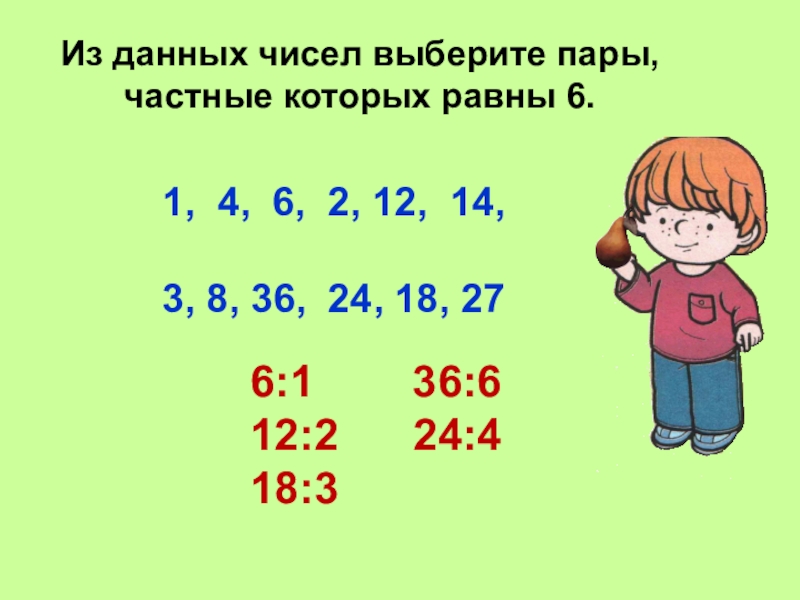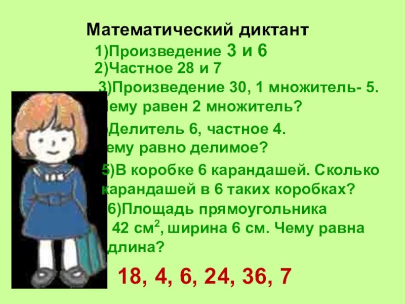 4)Делитель 6, частное 4.
