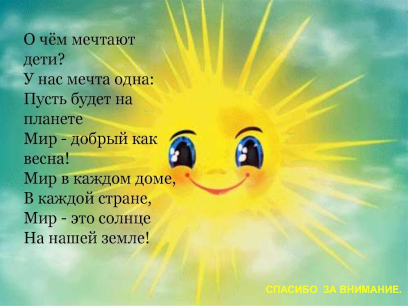 Слайд 30И СЕГОДНЯ МЫ СДЕЛАЕМ СВОЕ БОЛЬШОЕ СОЛНЦЕ ДРУЖБЫ ,МИРА И ДОБРА: