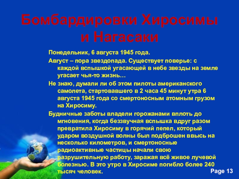 Слайд 13Бомбардировки Хиросимы и Нагасаки
