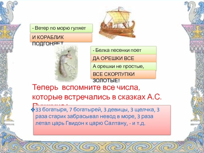 Теперь вспомните все числа, которые встречались в сказках А.С. Пушкина!