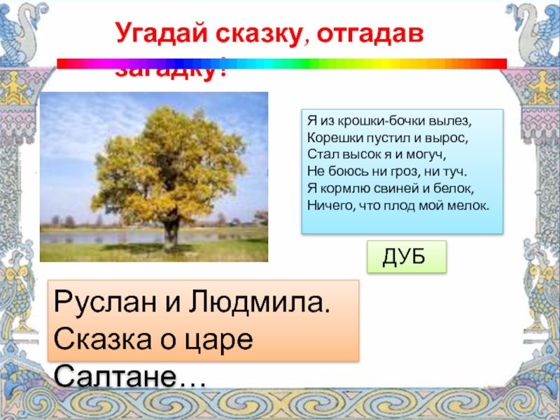 Угадай сказку, отгадав загадку!