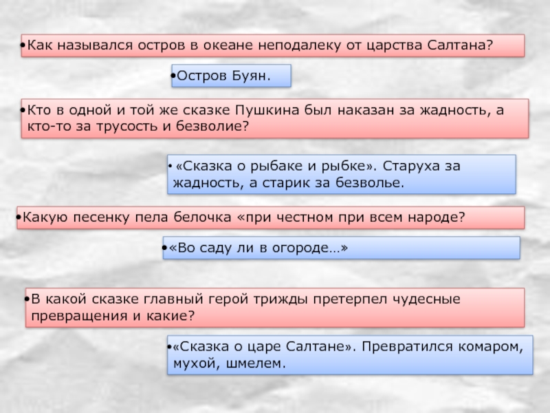 Кто в одной и той же сказке Пушкина был наказан за жадность, а кто-то за трусость и безволие?
