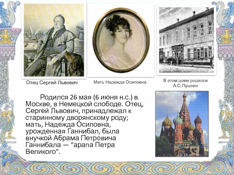 В этом доме родился А.С.Пушкин