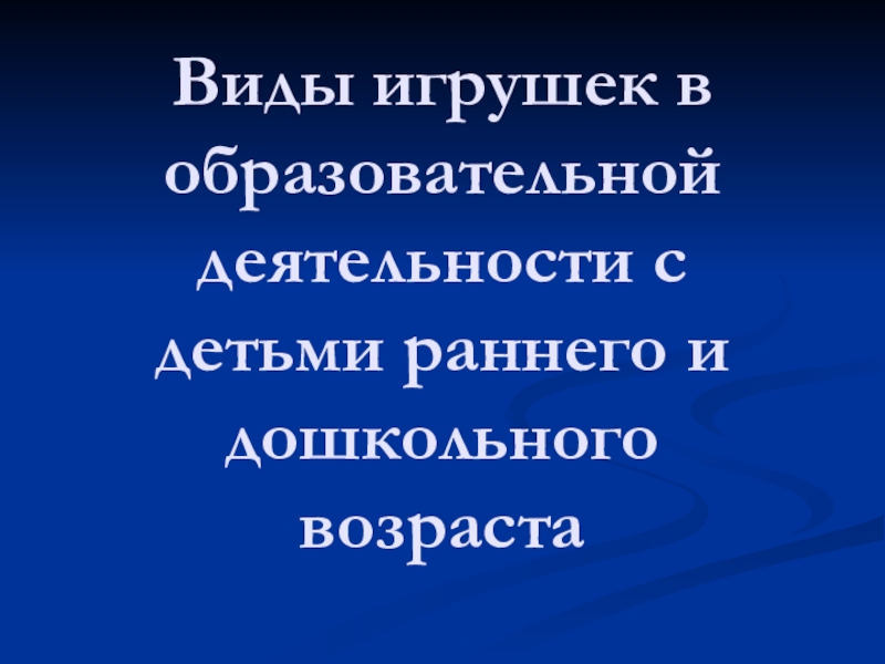 Слайд 1Виды игрушек в образовательной деятельности с детьми раннего и дошкольного возраста