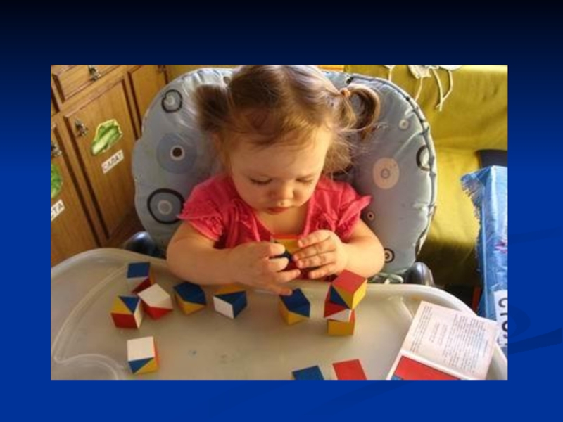 Кубики. Строительство башенок развивает моторику, координацию движений.