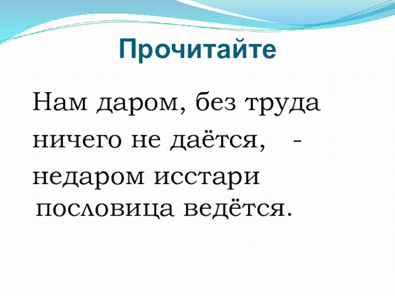 Прочитайте Нам даром, без труда ничего не даётся,  -