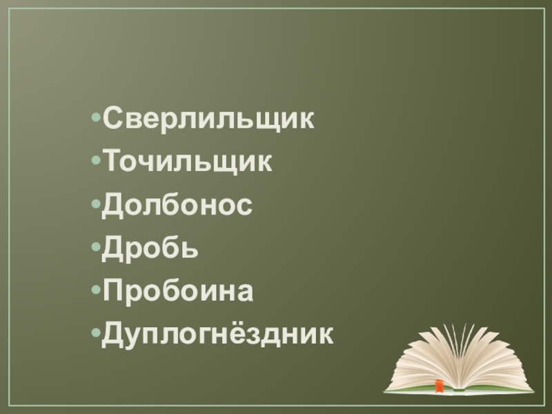 СверлильщикТочильщикДолбоносДробьПробоинаДуплогнёздник
