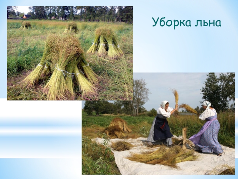 Слайд 5Уборка льна