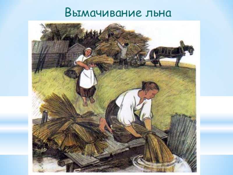 Слайд 8Трепание льна
