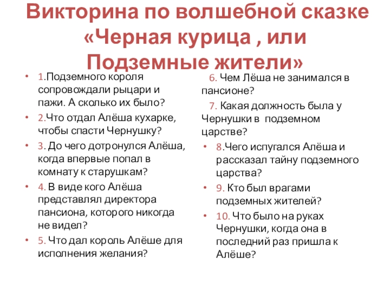 10. Что было на руках Чернушки, когда она в последний раз пришла к Алёше?