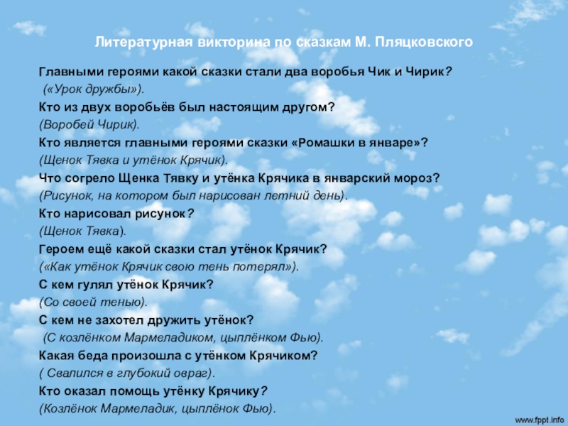 Это сайт презентаций, где можно хранить и обмениваться своими презентациями, докладами, проектами, шаблонами в формате PowerPoint с другими пользователями. Мы помогаем школьникам, студентам, учителям, преподавателям хранить и обмениваться учебными материалами.