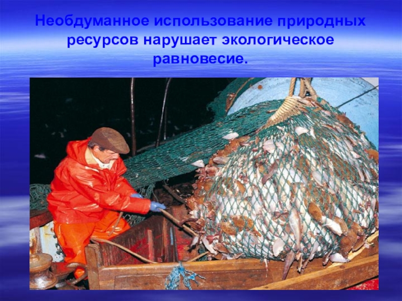 Слайд 15Необдуманное использование природных ресурсов нарушает экологическое равновесие.