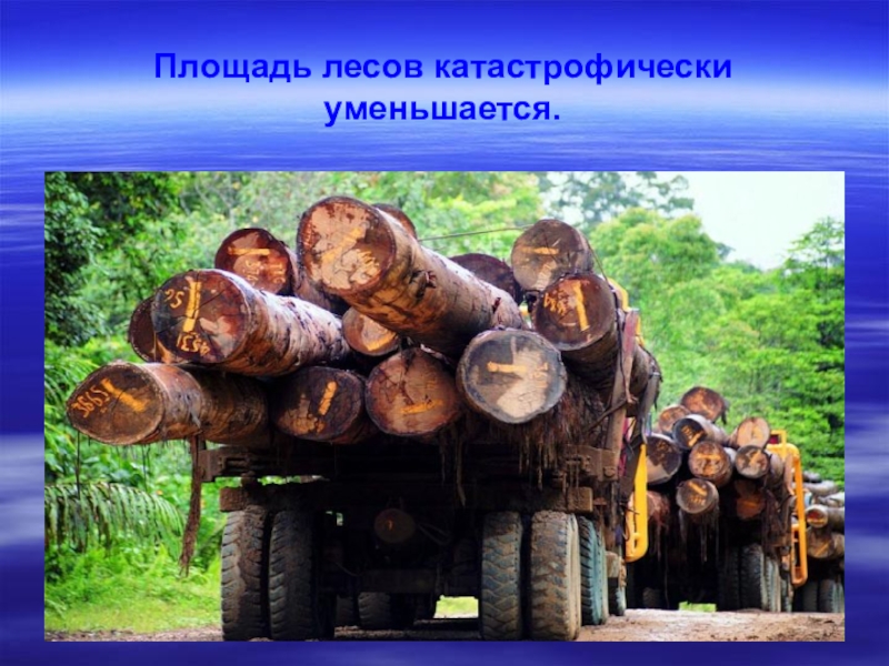 Слайд 16Площадь лесов катастрофически уменьшается.