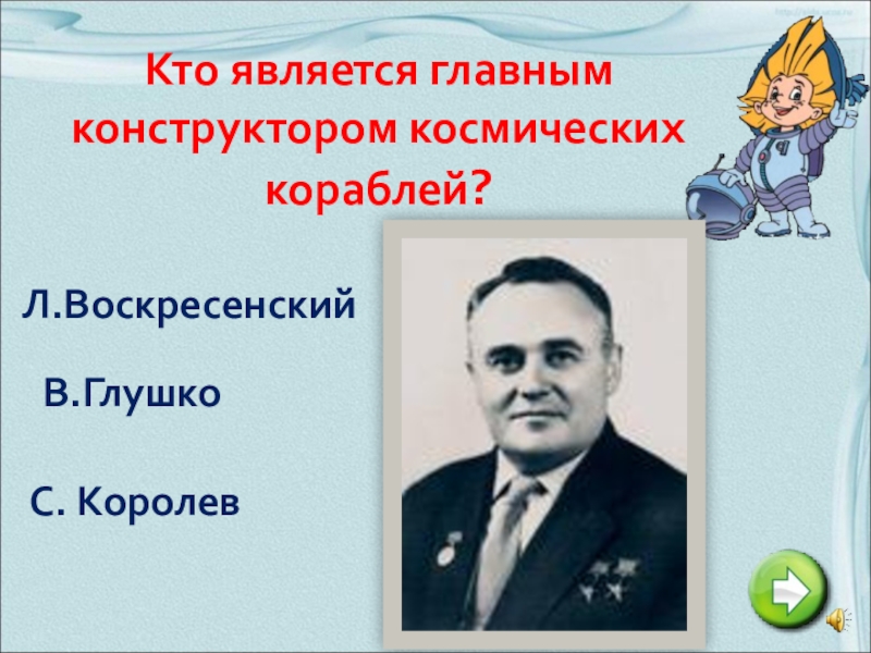 5. Кто является конструктором искусственных спутников Земли и космических кораблей?