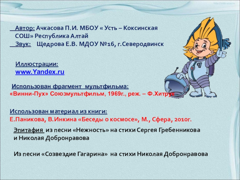 Е.Паникова, В.Инкина «Беседы о космосе», М., Сфера, 2010г.