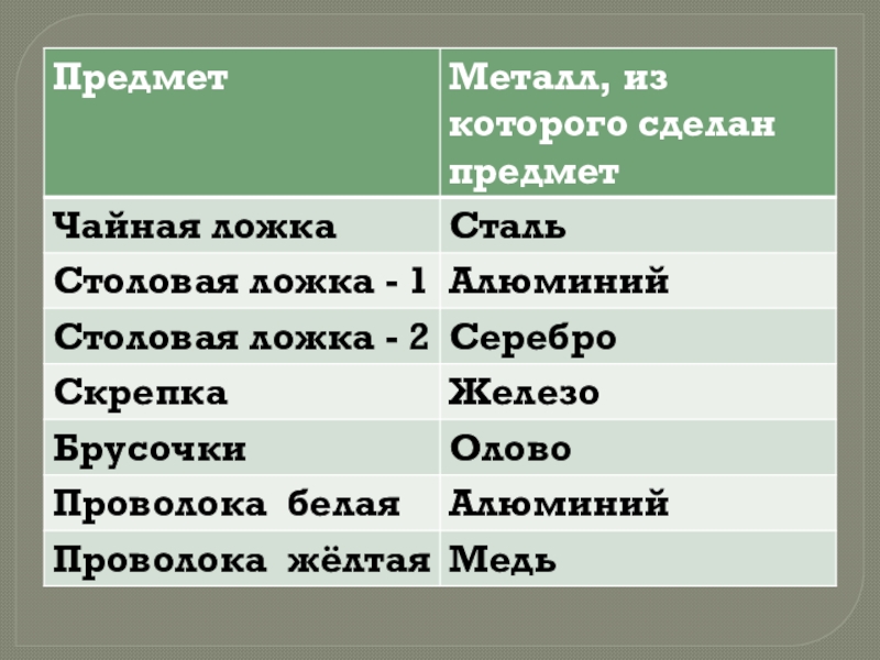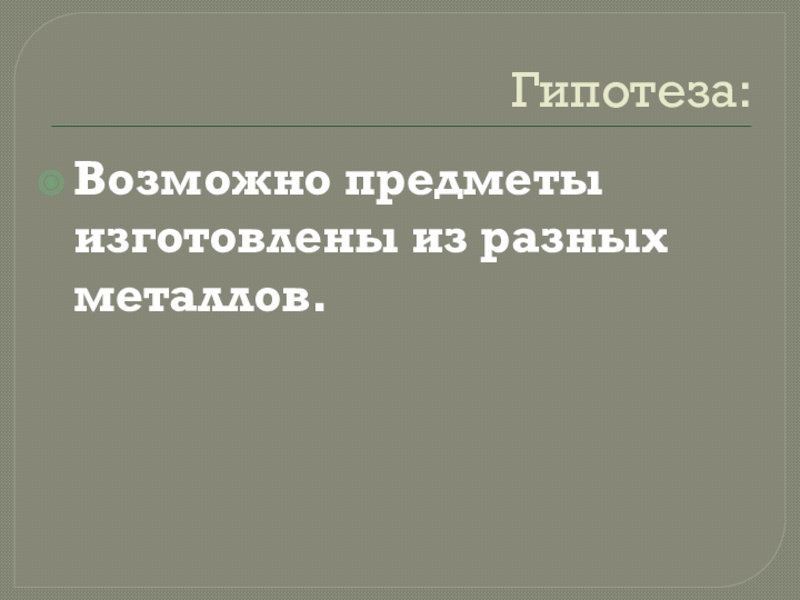 Гипотеза:Возможно предметы изготовлены из разных металлов.