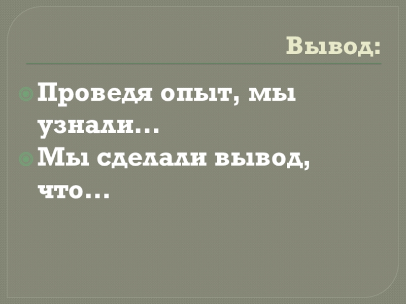 Вывод:Проведя опыт, мы узнали…Мы сделали вывод, что…