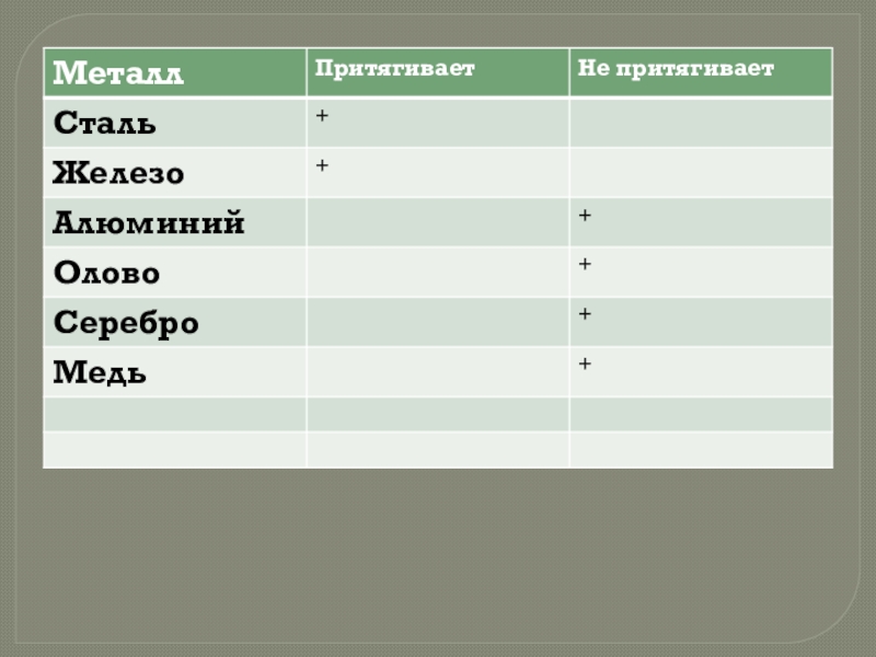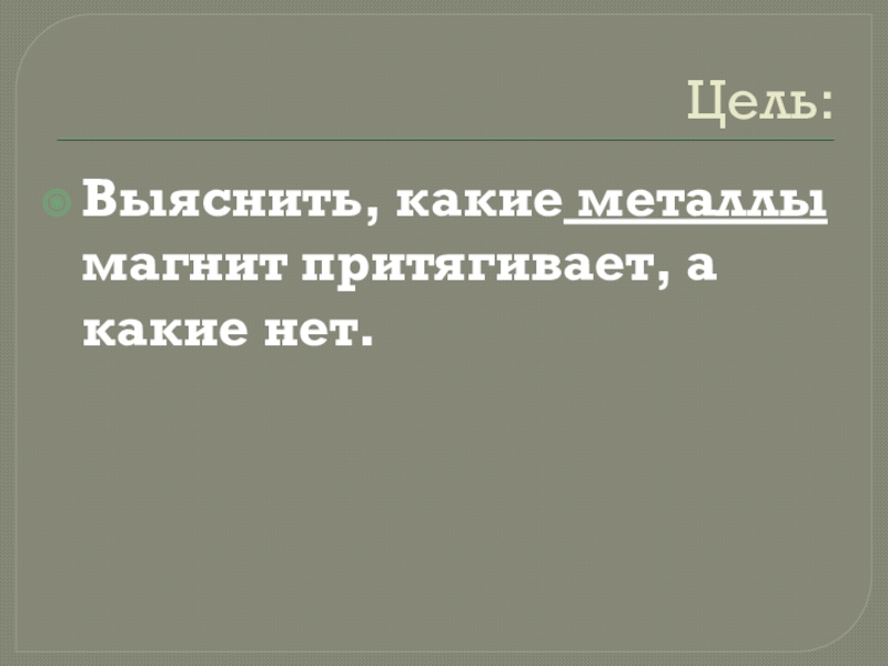 Цель:Выяснить, какие металлы магнит притягивает, а какие нет.