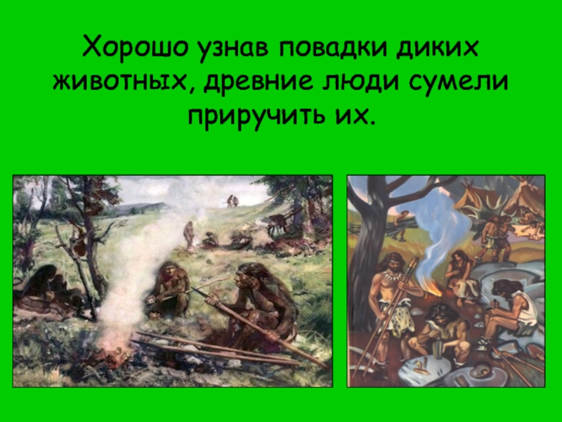 Слайд 3Хорошо узнав повадки диких животных, древние люди сумели приручить их.