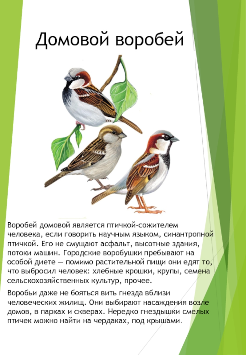 Воробей домовой является птичкой-сожителем человека, если говорить научным языком, синантропной