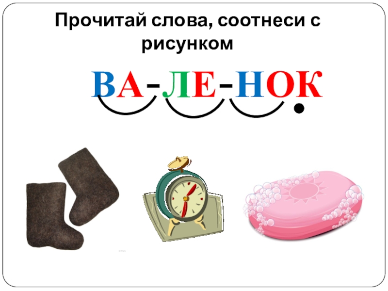 Прочитай слова, соотнеси с рисункомВА-ЛЕ-НОК