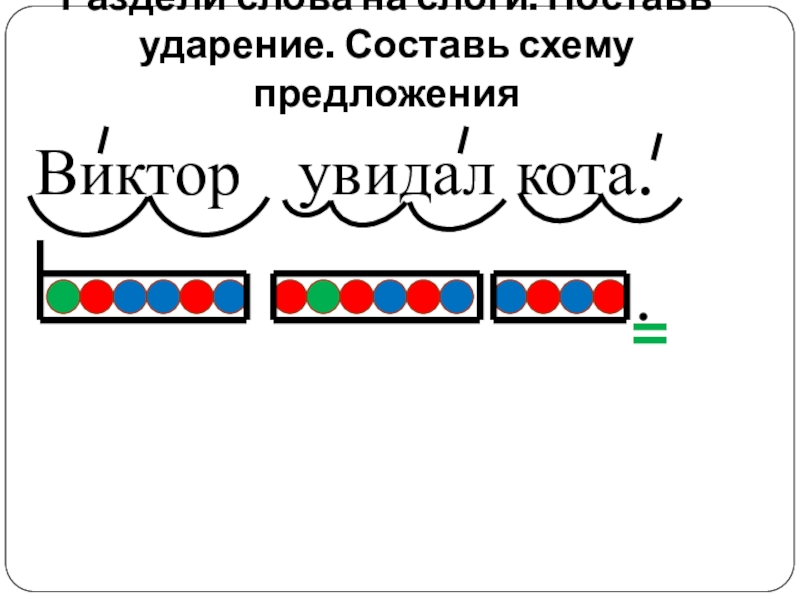 Раздели слова на слоги. Поставь ударение. Составь схему предложенияВиктор  увидал кота.