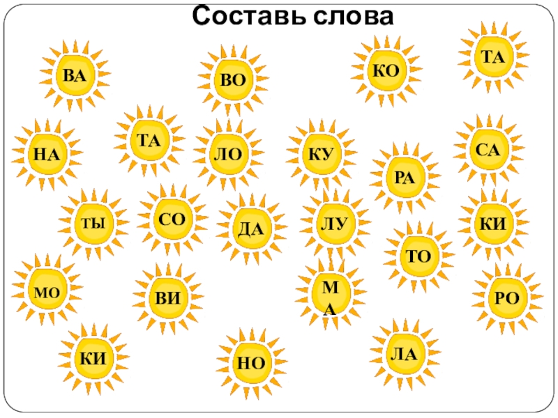 Слайд 41Придумай слова, которые начинаются на эти слоги