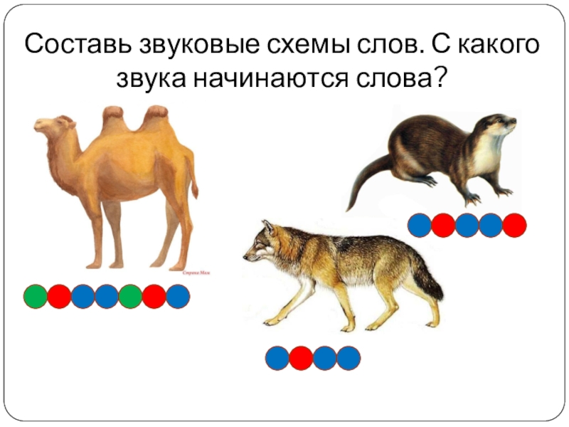 Слайд 25Составь звуковые схемы слов. С какого звука начинаются слова?